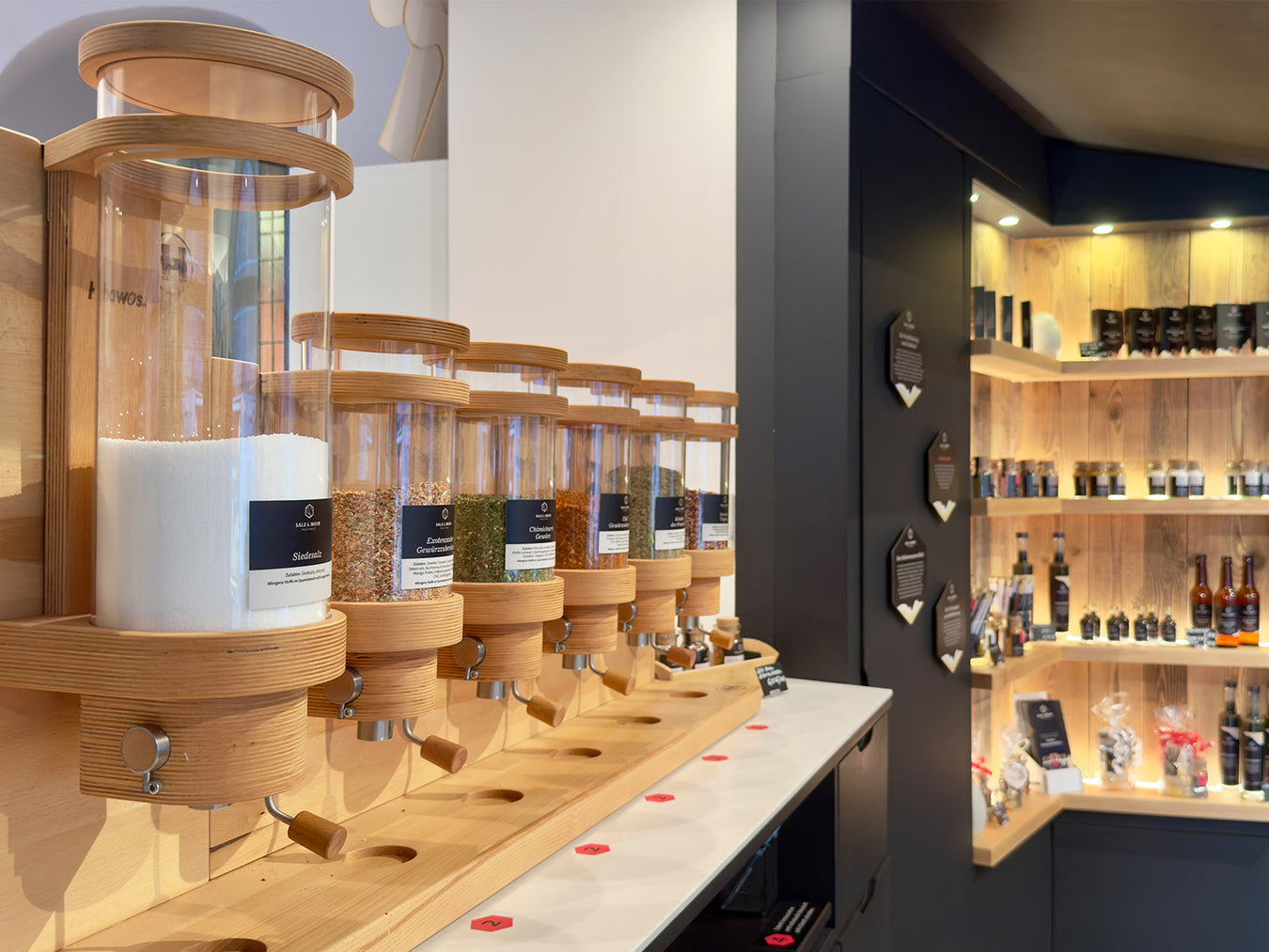 Hier finden Sie stilvolle Küchenhelfer, regionale Manufakturprodukte oder handgefertigten, glitzernden Schmuck aus Salzkristallen.