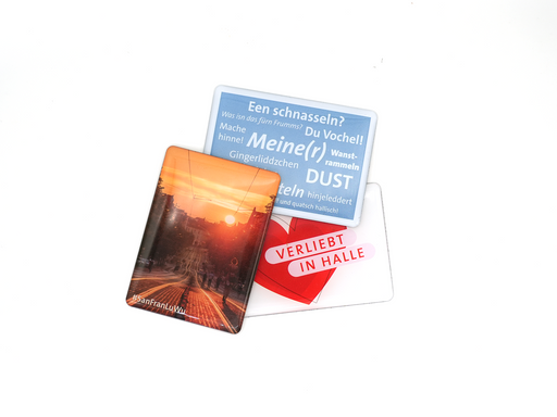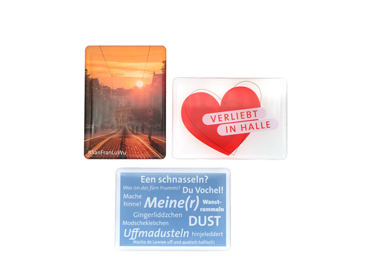 Attachment to fall in love with Rectangular, magnetic, good... Product Information: Size 7cm x 5cm Motive: „Verliebt in Halle“